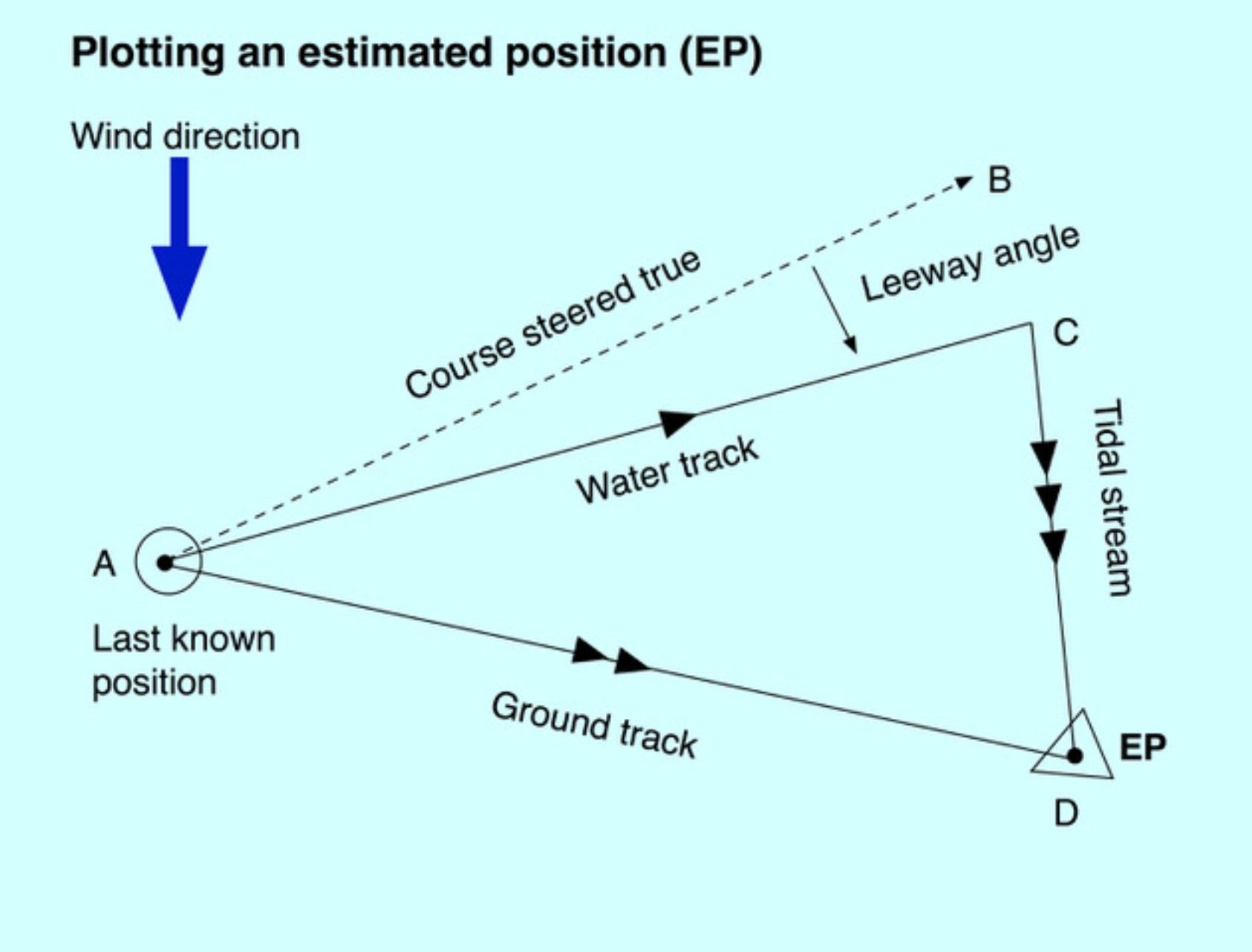 Sailors use the tidal ‘set’ and wind leeway to give an estimated position on a chart, like this: