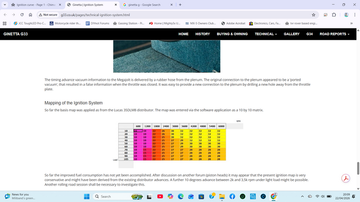 Down the bottom of the page is a table derived from the lucas 35DLM8 distributor.