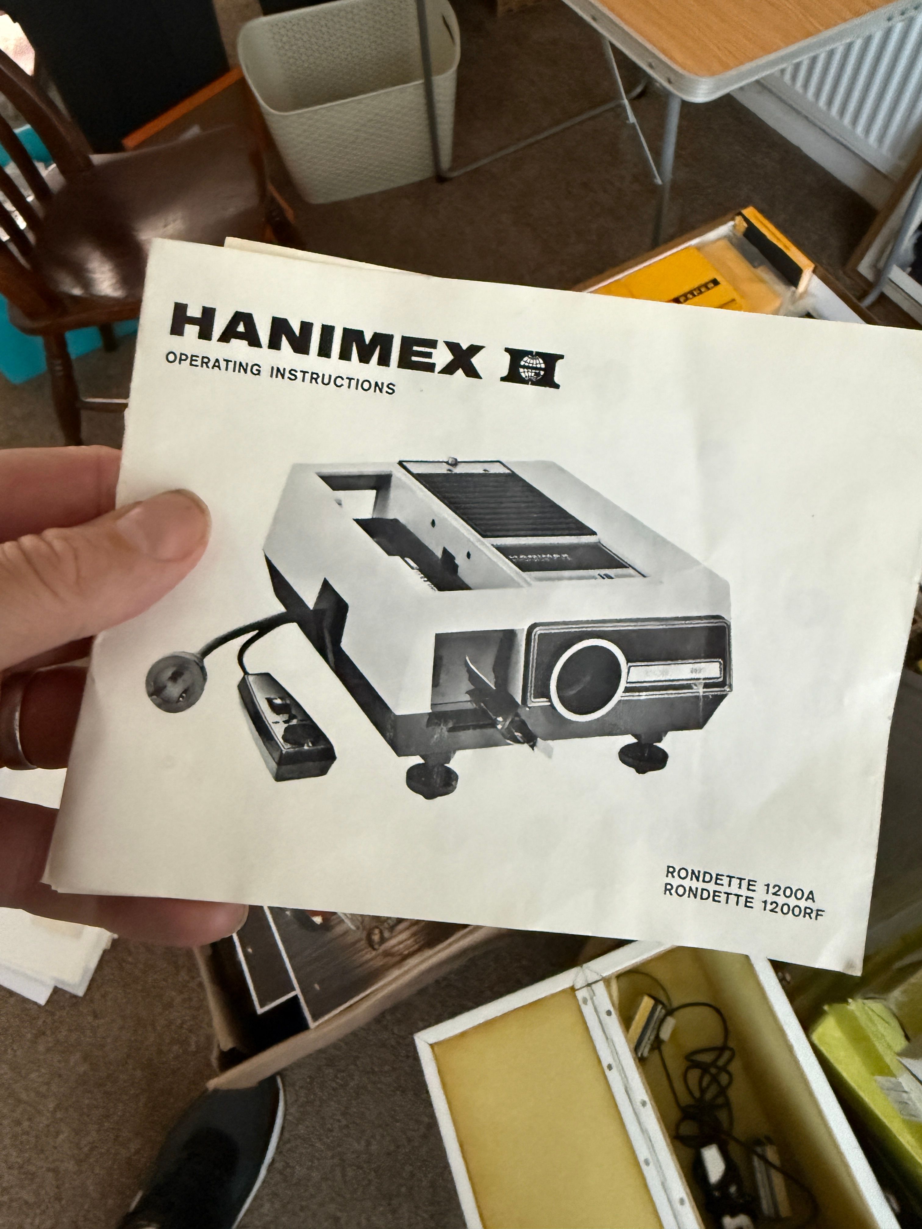 Clearing my mother's house and came across my grandads Hanimex slide projector reels and hundreds of slides, but no projector. The box, instructions and remote control/switch are there, but not the projector.
