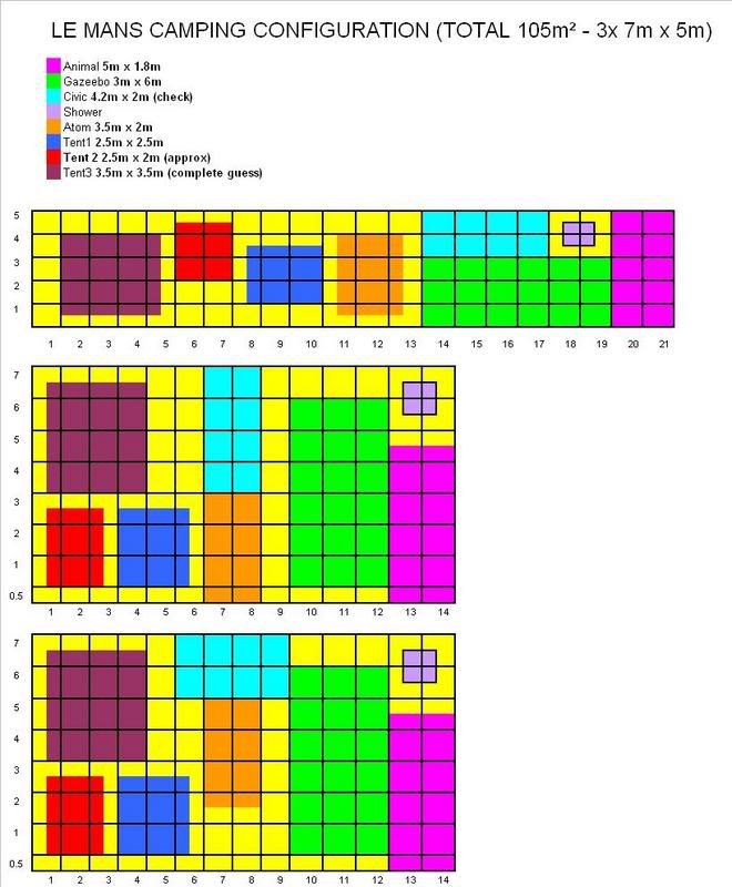 As for my plan, I only have a 6mx4m tent so far, with the car most likely parked in a common area to limit traffic through the tents... Easy enough!
