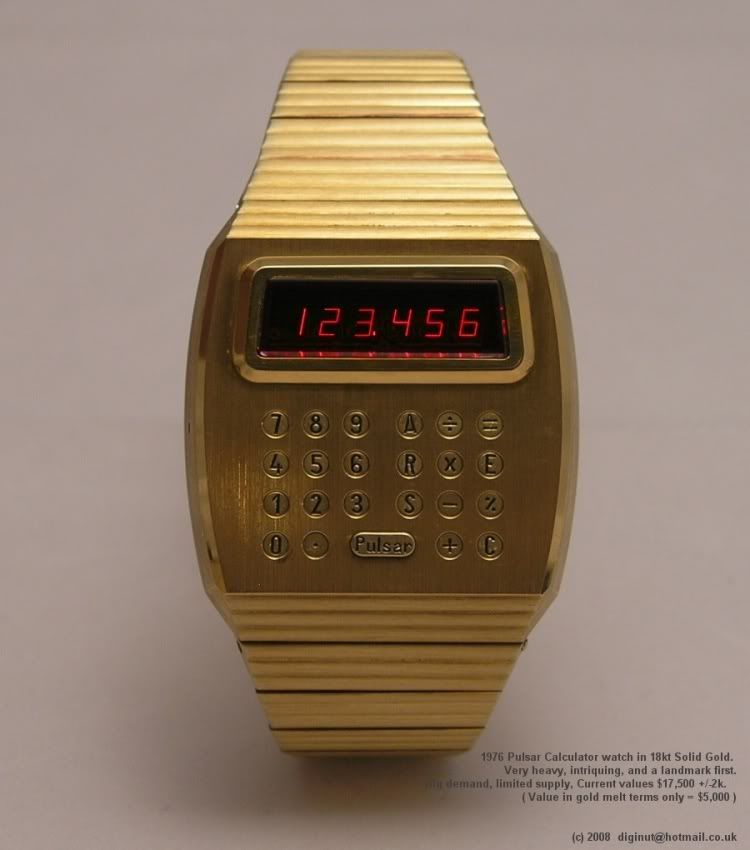 The world’s first ever digital watch, the Pulsar P1, was made out of solid 18k gold, its red lens was actually sapphire not Perspex as you might think. They cost $2,000 back in 1972 so only film stars and high profile people bought them, which was ideal for Pulsar because it created the demand for their subsequent more available models. Only 400 P1’s were made, and about 50 are known to exist today. But there’s plenty more of the subsequent 18k models. A lot were melted down in the 1980 gold price spike, because their melt value exceeded their low perceived out of date value by the late 70s. This lack of supply just forces values even higher. These watches are very simple, reliable, and can be restored and repaired if need be.