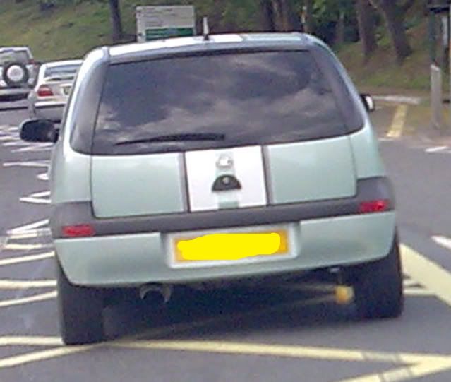 You should see the 'bling bling' black and silver alloys on it as well. Rear seats were up though so he was only getting 75% performance out of it. Must have been saving fuel!Jeez! You forgot to mention the chromed Arial..