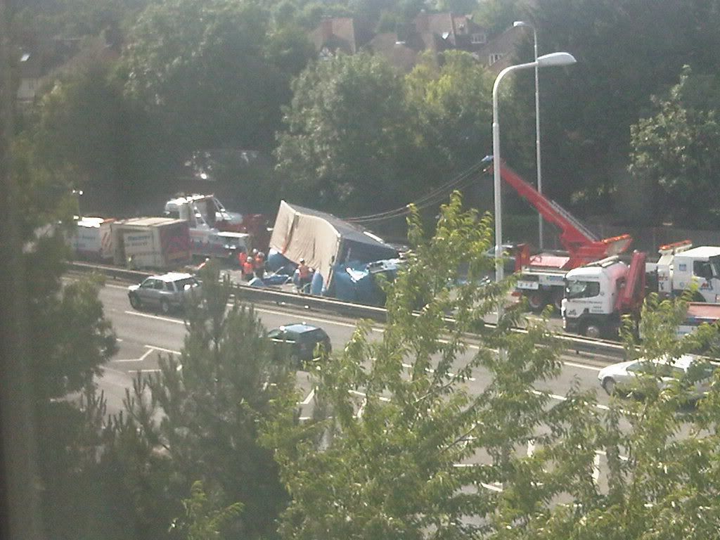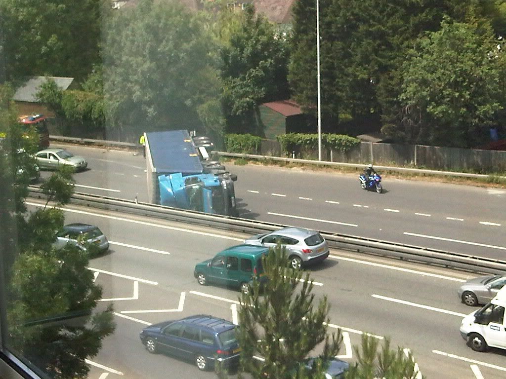 Got stuck in that... A trip from Goodwood to Surrey on Friday evening which would ordinarily take me a little over an hour took 4 hours!!! Wife and I... Less than impressed! Thank christ we were in the car we have with Aircon!! Truck looked a right mess when we eventually got past it. We were extremely pissed off about the whole thing at the time, but have to hope the driver of that truck got out alright.