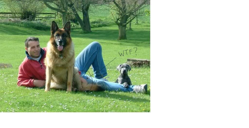 Am I right in thinking you've got two Great Danes and one German Shepherd? You must spend a fortune on pedigree chum!!