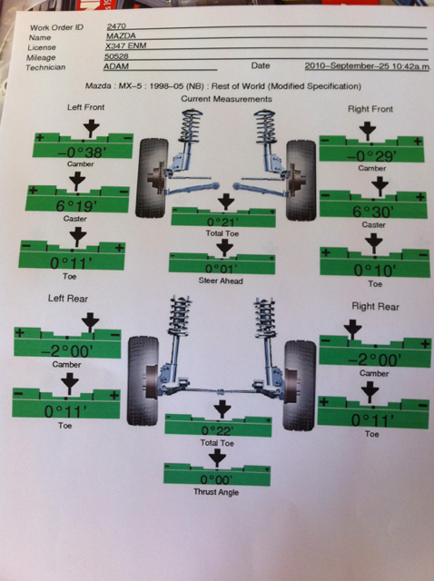 Here are my 1994 Miata's current alignment specs: