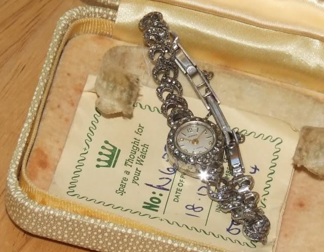 Along the same lines as the inherited Rolex, my wife has this Hermes cocktail watch she inherited from her grandmother a few years ago. I have tried without success to track down some info on it. It came with a box with the name "Ciro of Bond St" and a warranty from the same dated December 1962