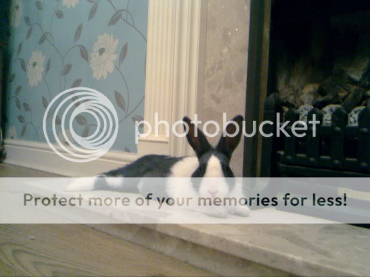 Go on, I'll be the first to post, this is Betty, a 20 month old dwarf blue Dutch doe. Affectionately known as "Thugs Bunny" as she hasn't got a nervous bone in her body. She has been known to chase the next door neighbour's Tom cat out of "her" garden!!