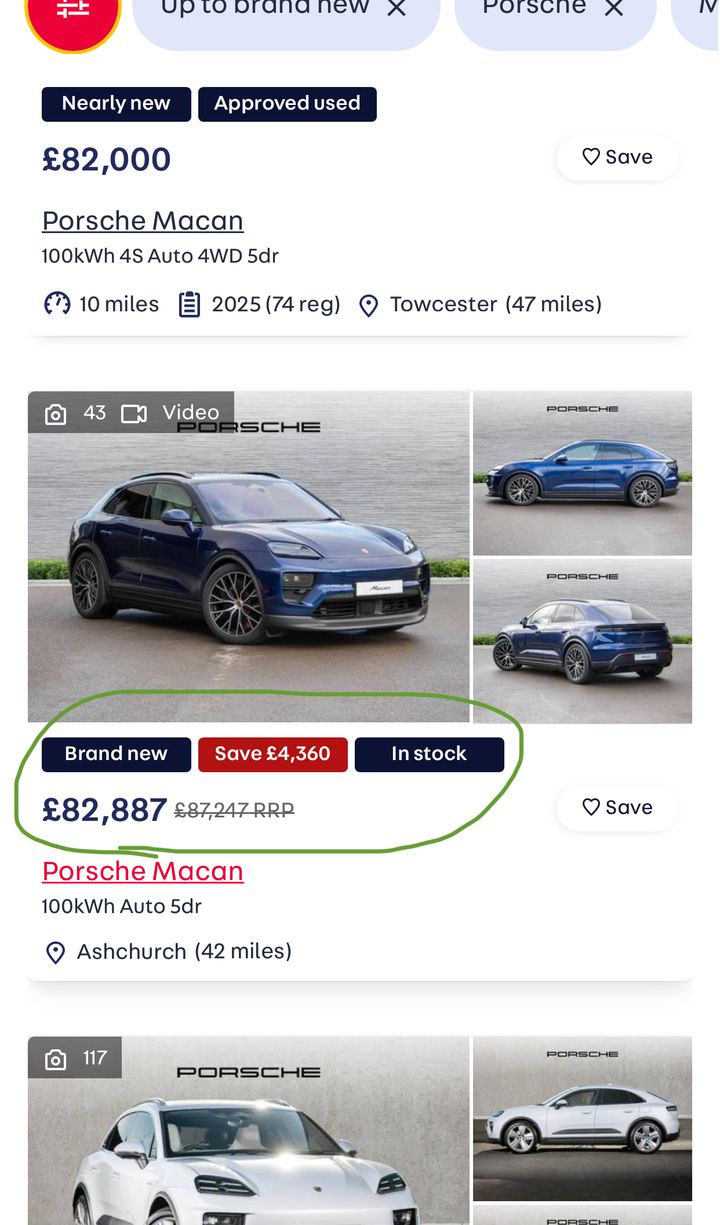 The cars are currently priced about £5–10k below their original cost new. To summarise the dealers’ responses, all insisted their cars were priced competitively and represented a great deal. While they mentioned they could reduce the price slightly if I acted quickly, they were firm about not offering deeper discounts, particularly not at percentages comparable to those seen with the Taycan.