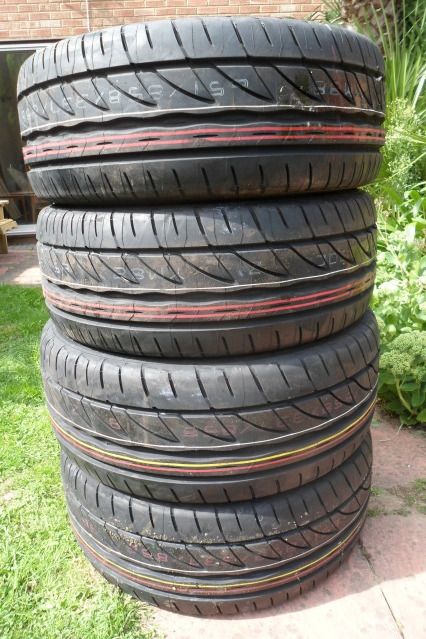 It has taken me a while to decide what tyres to go for. I wasn't convinced by the main 3 people use on VX220's, so I have decided to go against the grain & have fitted the new Bridgestone Potenza RE002. I've only done a few miles on them & the tyre pressures were in the mid thirties (way too high), but first impressions are very good.