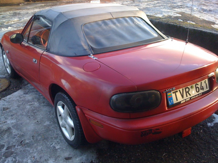 The story started about two years ago, when I've realized that I want an MX5. After driving my WRX and other STis and Evos I've understood that I rather prefer a cheap lightweight no-lag kart-like machine. No need to explain lightweight etc, but cheap means cheap tyres, cheap parts, low fuel consumption, so much more track time (= fun) for the same money. Time passed, I've sold the WRX and finally was ready to buy a Mazda. In february I went to Lithuania to look at a '90 1.6 MX5. It didn't look very clean, but showed no signs of crashes or other catastrophic problems so the deal was made and with help of a mate we got the car to Riga. Here it is: