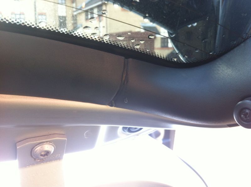 As you can see after washing the car and heavy rain this is where the water seems to be seeping in around the trim. I have found via a few searches that you have to check the silver trim at the bottom of the glass and the trim at the very top. I'm not going to get it sorted right now because it isn't *that* bad (yet)