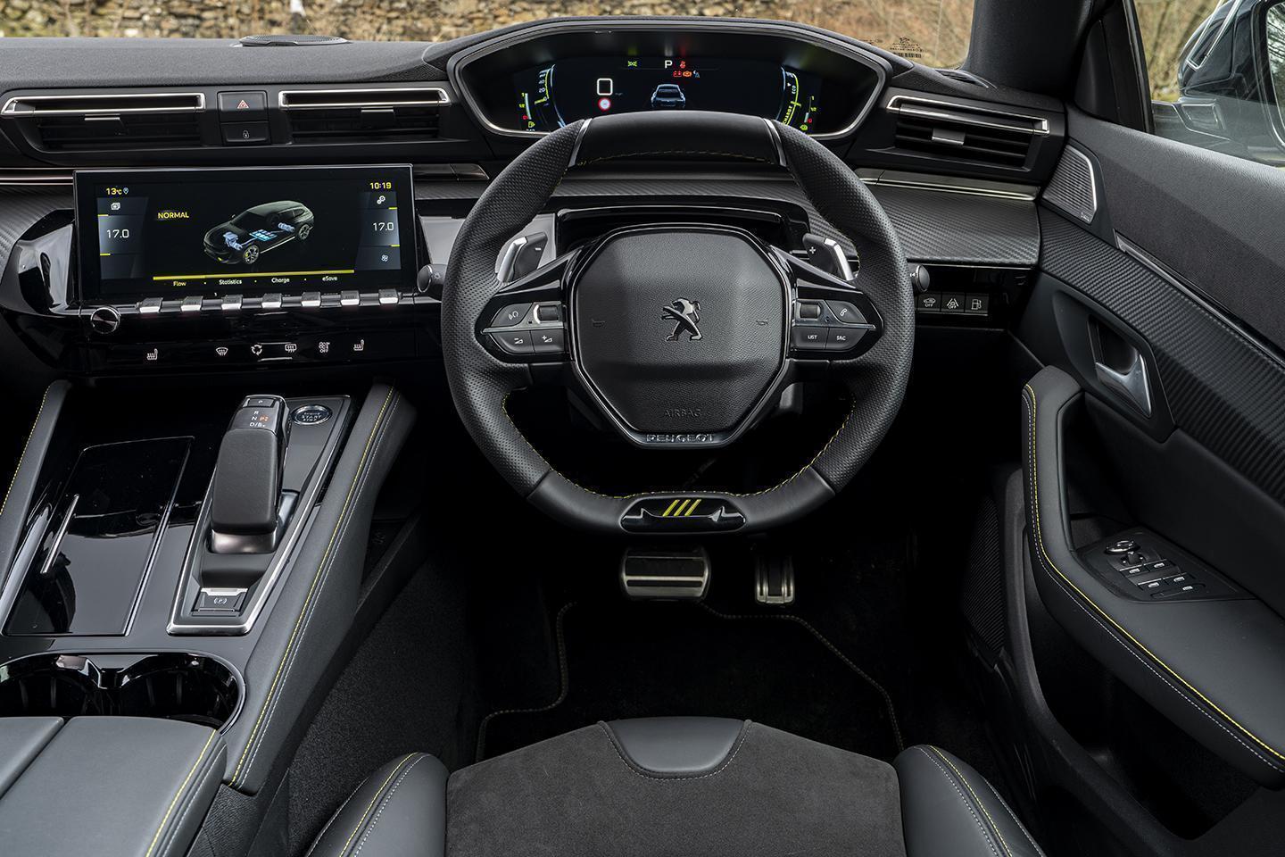 This is all well and good, but eagerness-to-please is not necessarily synonymous with involvement. This is not the fault of the powertrain: 360hp from a petrol-hybrid might not sound deeply thrilling, but the gearbox and power delivery are pleasing enough to interact with. Instead it's the steering which falls short, with Peugeot conjuring up too little feel from its electric rack. In its defence, there's no awkward weighting to cloud things; just a fundamental lack of comms with the front wheels. And, as ever, that's a problem when you're hoping to appreciate the nuance of a seemingly well-sorted chassis.