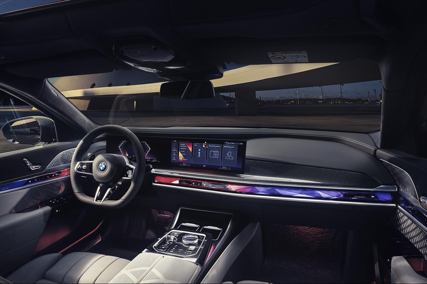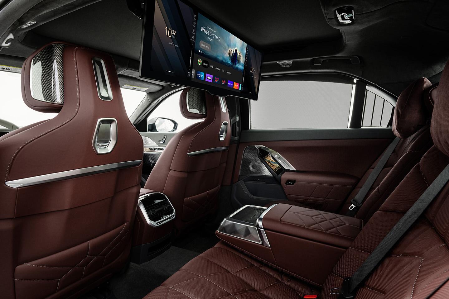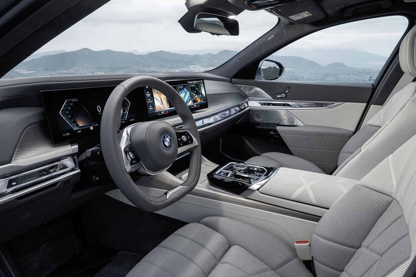 One highlight that marks the new 7 Series out is its rear Theatre Screen with in-built Amazon Fire TV for streaming on the move. This is a 31.3-inch 8K touchscreen display running the width of the rear compartment that lowers from the roof lining. It does this to a soundtrack by Academy Award winner Hans Zimmer, and closes the blinds and dims the lights at the same time.