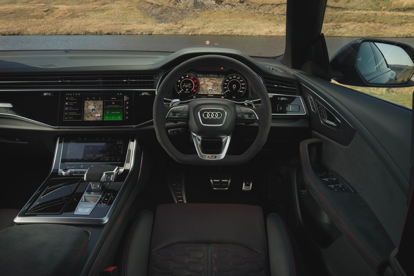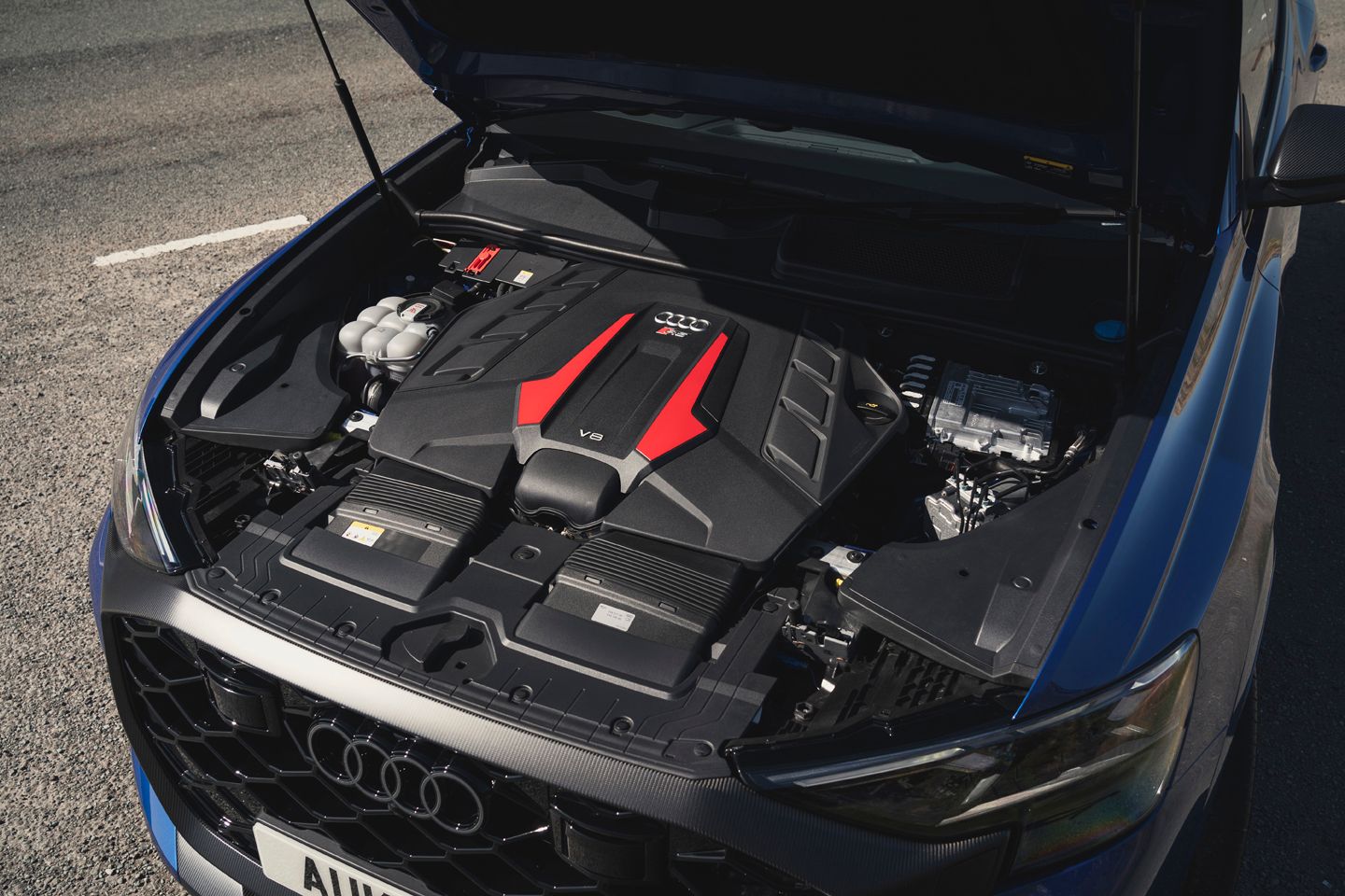 Perhaps that’s underselling the check-me-out-bruv presence of forged 23-inch alloys (standard with Carbon Black trim), but were it not for the pearl effect Sepang blue paint finish (a £5,750 option), you might reasonably mistake the RS for a lowlier Q8. Not everyone, after all, notices a honeycomb grille. Even facelifted, the RS has none of the chutzpah of a Lamborghini Urus, nor the pointier cohesiveness of a Porsche Cayenne, two of the upmarket SUVs that share its MLB Evo platform and much else besides. Nevertheless, there is no mistaking the level of RS-style intent when you fire the thing up in a Premier Inn car park.